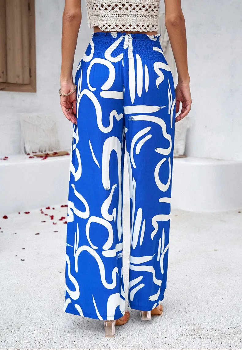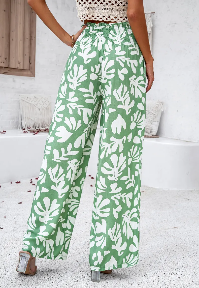 Elegant Printed Trousers Summer Loose Elastic High Waist Straight Pants For Beach Vacation Womens Clothing